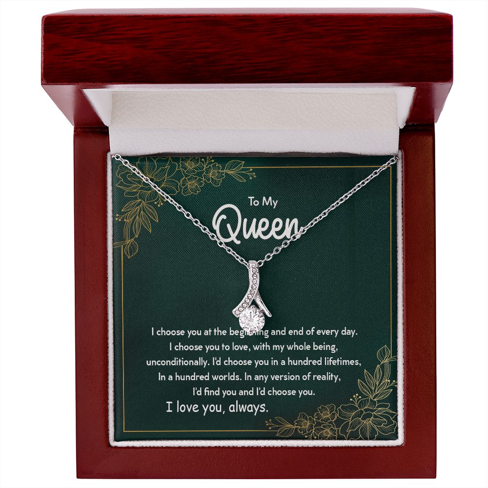 Imagine her reaction when she opens this stunning gift! The Alluring Beauty necklace features a petite ribbon shaped pendant that is sure to dazzle your special someone. Whether it's a birthday or anniversary, make sure to get her a gift she will love for years to come.